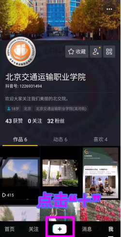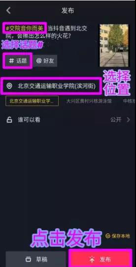 视频发布时添加挑战 #跃动青春魅力北交院#