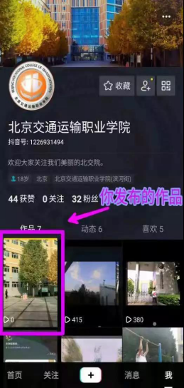 2.确认视频发布成功后,识别下方二维码即可添加北交院抖音作品管理员(可进一步了解自己作品的情况)