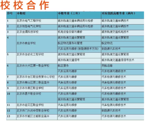其中,与北京市门头沟区中等职业学校、北京市商业学校合作的新能源汽车技术专业,与北京市东城区古城职业高中合作的汽车检测与维修技术专业为今年新增合作项目。