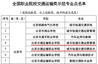2016年城市轨道交通运营管理、车辆技术专业被评为全国职业院校交通运输类职业示范点: