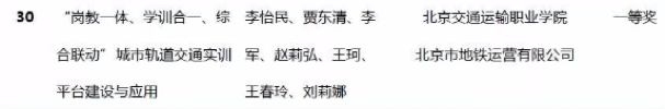2018年城市轨道学院荣获-2017年北京市职业教育教学成果奖一等奖;