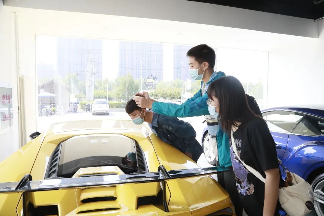 与此同时,到访师生在酷车小镇仲远及懂车学院李玲香的陪同下,分别参访了 酷车小镇园区内的易车之道、XPEL、臻容行、懂车连锁、洗车王国等小镇知名商家,全方位了解了豪车二手车产业、高端摩托车产业、汽车维修车间、国际知名连锁门店等,参访过程中也邀请门店店总为大家解读行业相关内容,北交院学生们对于以后学习的方向有了更详细的认知,深度激发了内在兴趣。