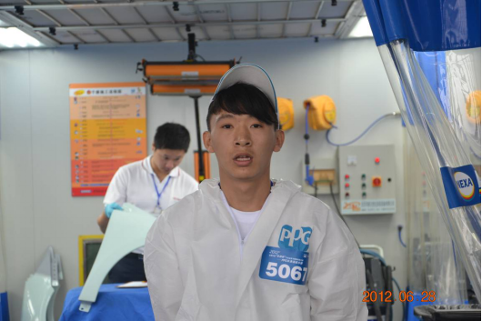 目前在三元桥一汽丰田旗舰店工作,2013年一汽丰田喷漆技能大赛华北区冠军、全国优秀奖