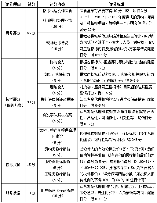 PP电子游戏网站招标代理机构遴选项目评分表