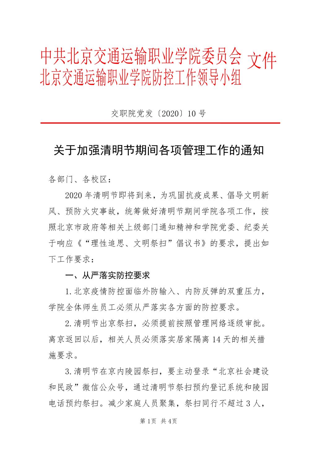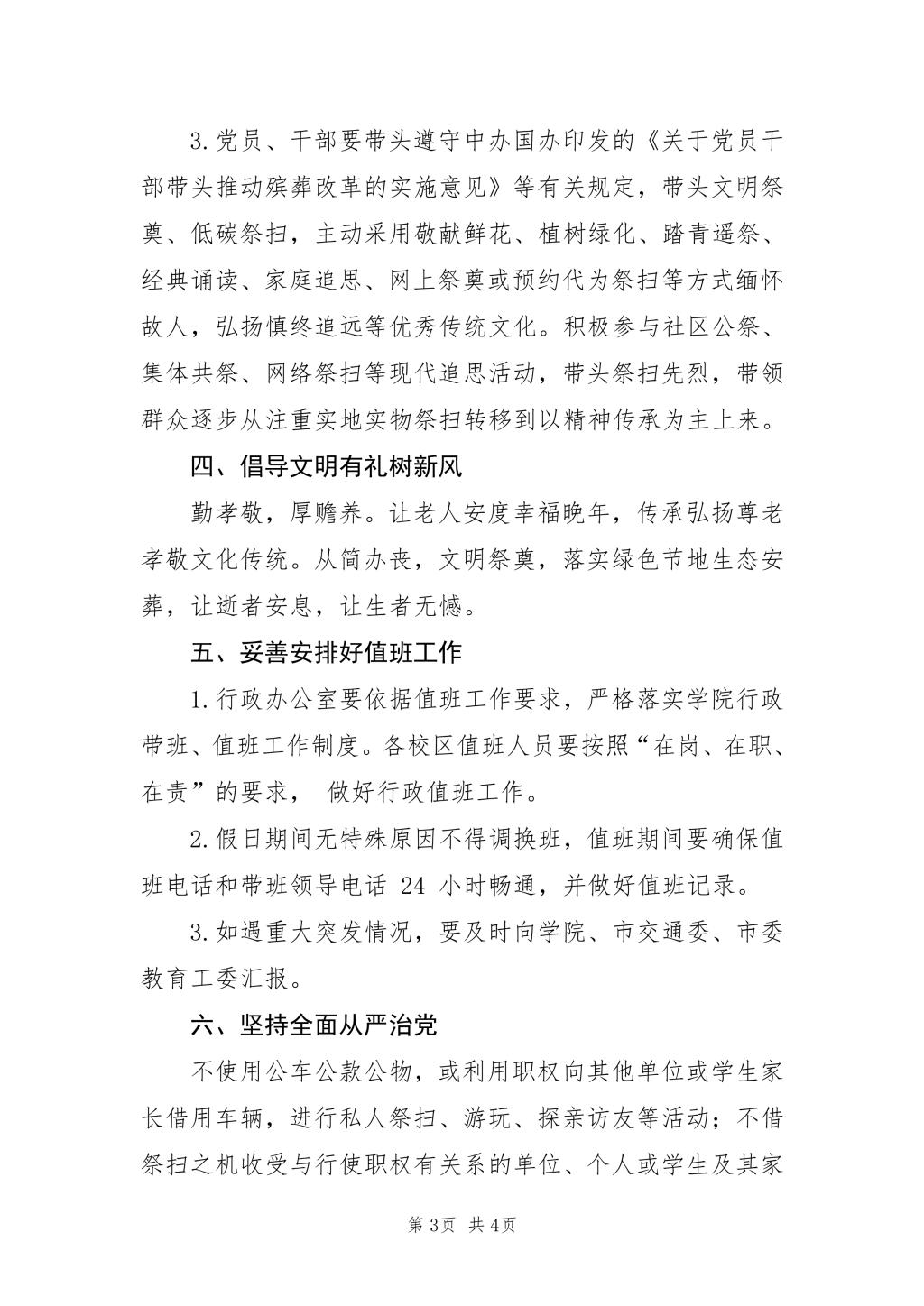 关于加强清明节期间各项管理工作的通知