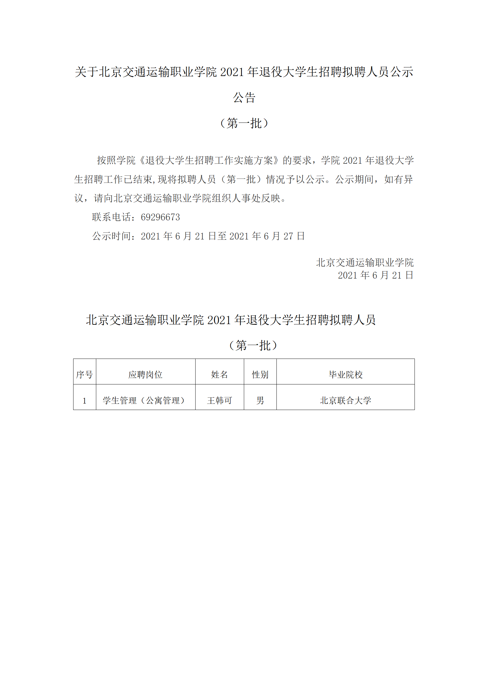 关于PP电子游戏网站2021年退役大学生招聘拟聘人员公示公告(第一批)