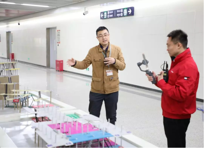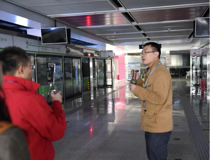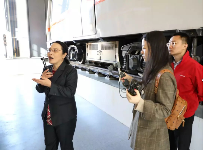 海淀校区轨道实训基地内,城市轨道学院教师朱晓晨为大家讲解各实训区域功能及作用。