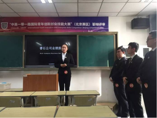 10月22日,第二届"中英'一带一路'国际青年创新创业技能大赛"北京赛区比赛在北京财贸职业学院圆满落幕。中国教育学会常务副会长戴家干,北京市教育委员会职成处副处长吴缨,中国创意产业联盟常务副主席兼秘书长杨志勇,中英创新创业职业教育联盟(北京)的院校领导等出席了此次北京赛区的闭幕式。