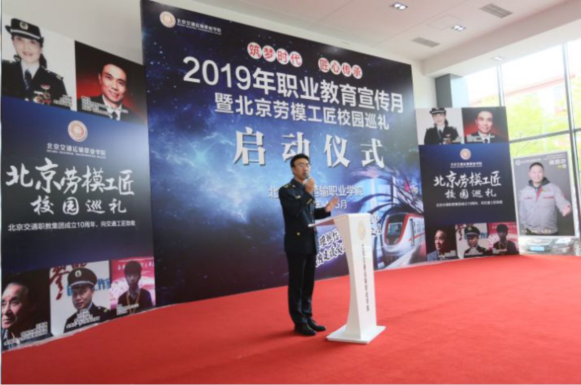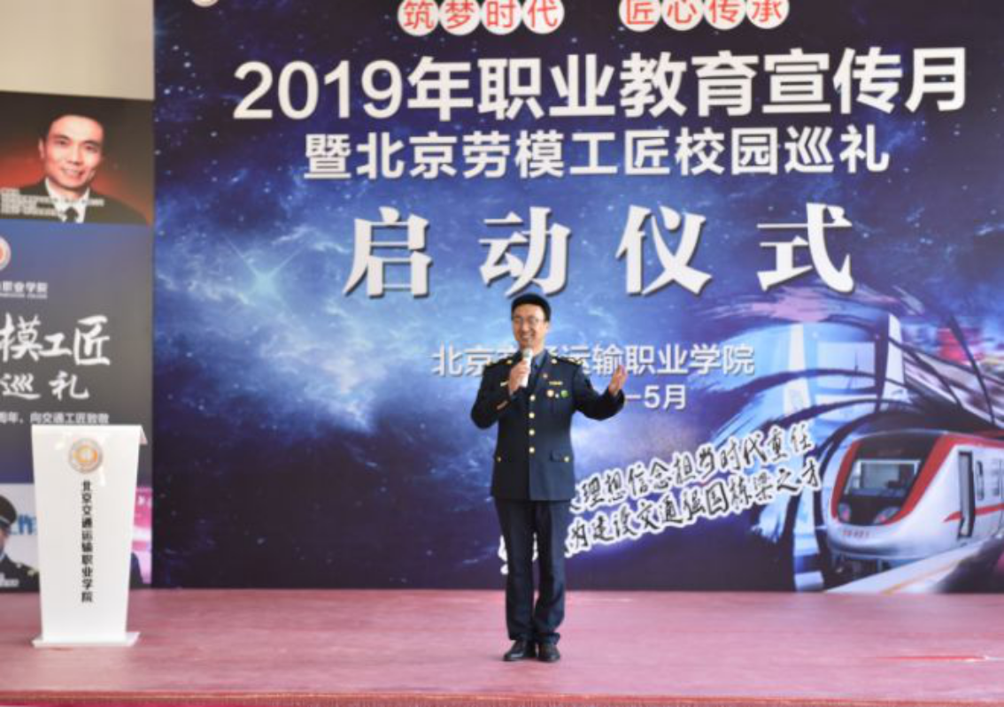 4月25日,2019年职业教育宣传月暨劳模工匠校园巡礼启动仪式在学院海淀校区举行,多名劳模工匠和技能大师出席活动,活动受到正在学院调研北京市交通职业人才培养工作的交通运输部党组成员、副部长刘小明一行领导的关注。北京交通宣讲团的四名宣讲员到场,北京市交通委员会顺义公路分局李亮现场宣讲自己扎根平凡岗位、服务百姓出行的优秀事迹,传递出坚守一线、甘于奉献的劳模精神,打动了参与活动的领导和师生。