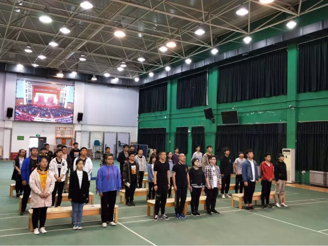 上午10时30分,通州校区团委书记靳宁、团委张海楠老师组织通州校区院系级团学干部30余人在多功能厅收看《纪念五四运动100周年大会》直播。