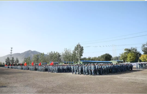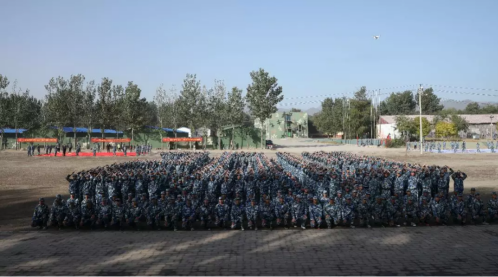 PP电子参训学生,斗志昂扬,整齐排列,等待检阅。
