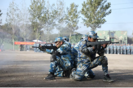 四个表演方阵中,匕首操、特战队战术展示了沙场英儿永不言败的精神与顽强果敢的作风。海军旗语、拼图组字等方阵汇报表演,更是以统一规整的动作,优美柔和的手势展示了2019级新生热情洋溢的青春风采,将汇报表演推向了高潮。
