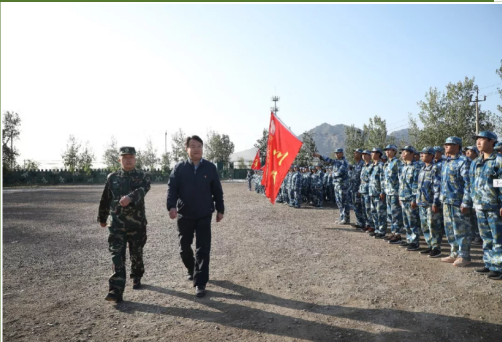 副院长贾东清在基地教官的带领下,对受训连队进行一一检阅。