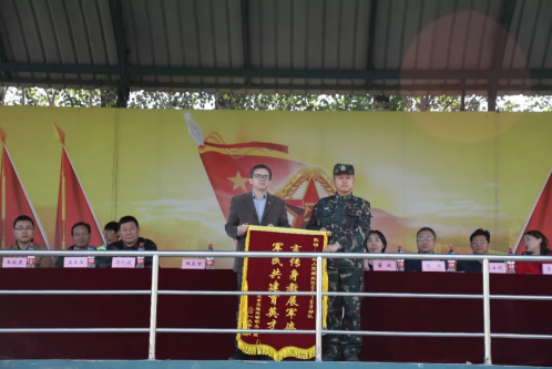 为了答谢北京盛华军训基地这14天以来对学生们的锻炼和教育,帮助学生们养成了良好的生活作风和优秀的品质,学院纪委书记、副院长甄众学向北京盛华军训基地赠送锦旗。