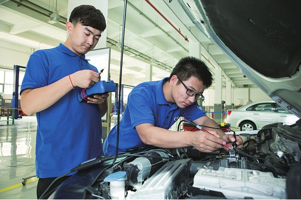 汽车运用与维修技术专业学生实训。