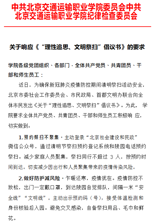关于响应《“理性追思、文明祭扫”倡议书》的要求