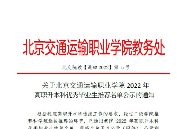 关于PP电子游戏网站2022年高职升本科优秀毕业生推荐名单公示的通知
