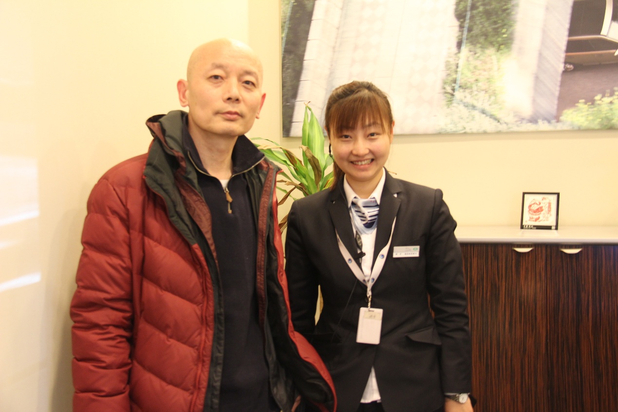 首先,做为服务口的行业,最重要的就是服务好客户,说着容易真正能够做到让客户满意是件很困难的事情,但是穆宇做到了,2014年穆宇没有一条客户因服务态度或服务流程对她的抱怨及投诉,真正做到了服务好每一位客户,其中不乏有大家都认识的明星客户“葛大爷”,“葛大爷”也是对穆宇的服务表示非常满意,并被穆宇的微笑迷住了,当然穆宇也是“葛大爷的影迷”,他们被彼此“迷”住了,照片为证。