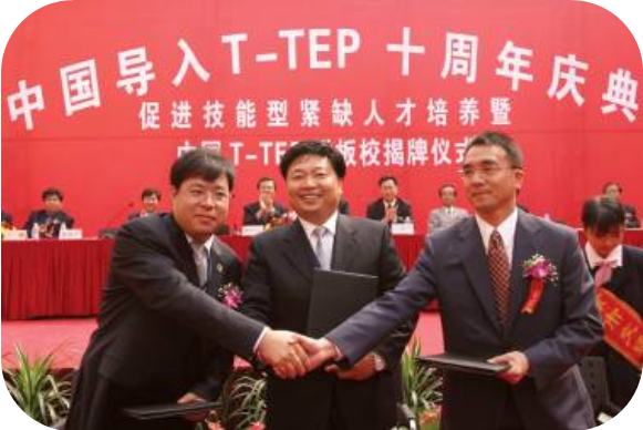 1994年我校成为全国首个引入丰田教育(T-TEP)的学校,2004年9月,丰田公司在我校举办丰田T-TEP十周年庆典,我校被授予中国唯一的T-TEP样板校,并在全国丰田T-TEP项目的综合评比中连续多次获得全国第一名。