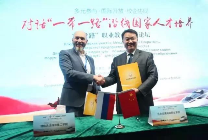 2012年,学院与德国德累斯顿工业大学签订《合作办学协议》,成立中德交通运输职业教育研究所,开展中德本科层次技术技能人才联合培养。以“交通通信与信息技术”专业为基础,结合本国交通行业特点,构建包括18个理论模块和15个实训模块的整套课程体系,开展专业教师培训。