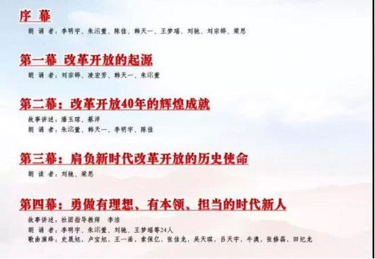 从开启新时期到跨入新世纪,从站上新起点到进入新时代,演绎活动以时间逻辑为顺序,通过四幕展演为我们再现了改革开放前的风云激荡、改革开放伟大决策的鸿篇巨制、改革开放中的奋斗赞歌、改革开放40年后的伟大成就,把师生们带回了幅波澜壮阔的历史和现实画卷中。