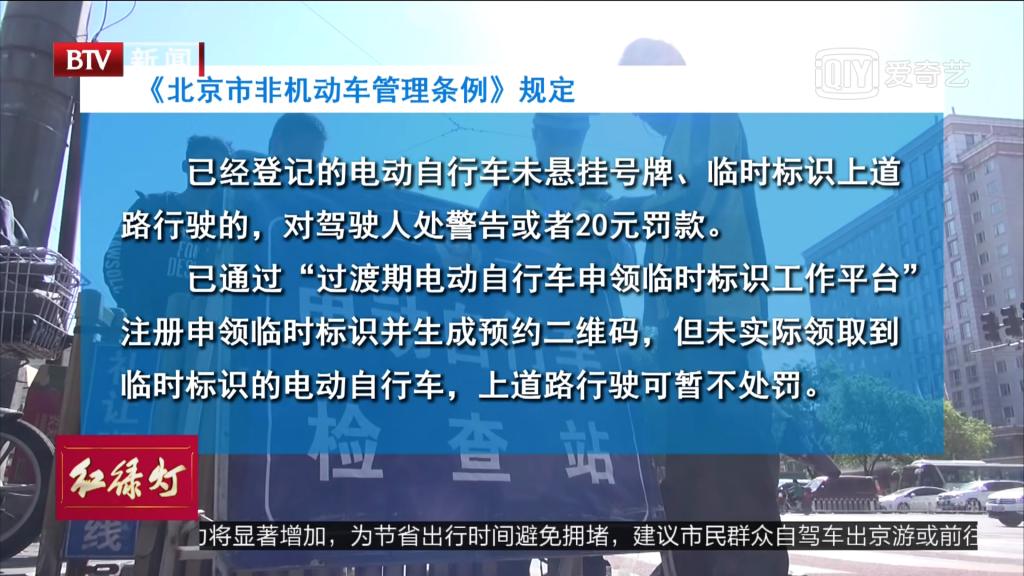 根据北京市交管部门透露,根据《北京市电动自行车过渡期登记和通行管理办法》,电动自行车临时标识申领业务将于4月30日截止,5月1日起,未按规定申领临时标识以及未按规定登记注册并悬挂号牌的电动自行车均不得上路行驶,否则则交管部门将依法予以处罚。