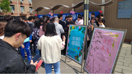 2019年4月16日在我校食堂门口校团委开展了把绿色带回家主题活动。