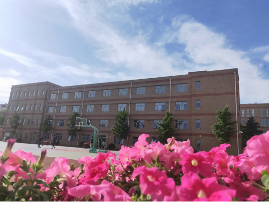 教学楼前面的小树开了不少鲜艳的花,像一个个害羞的玉女,散发出一阵阵淡淡的清香,