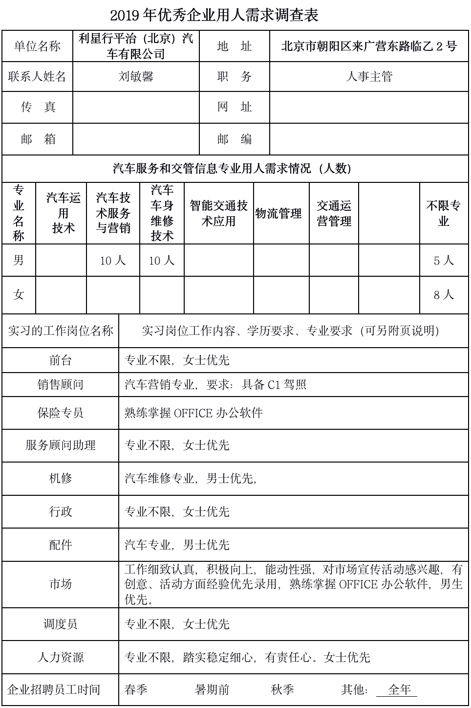 利星行平治2019年企业需求