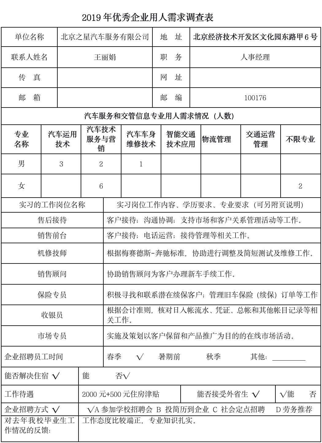 北京之星2019年企业需求
