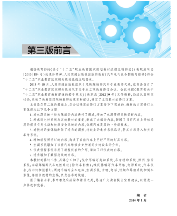 3.《汽车电气设备构造与维修》“十二五”国家级规划教材封面及前言