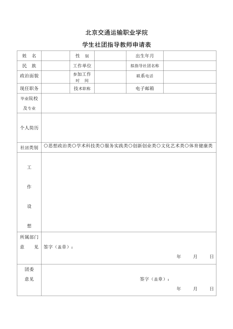 学生社团指导教师申请表