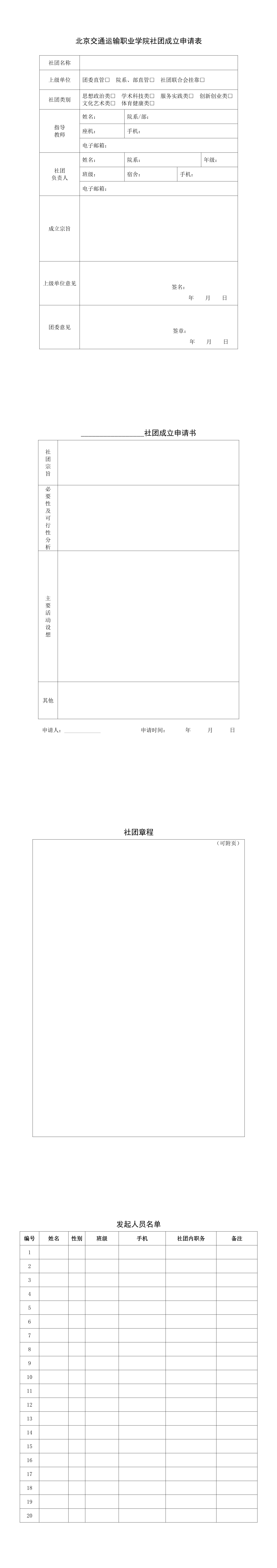 社团成立申请表