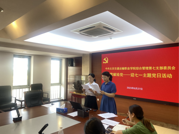6月27日,综合管理第七党支部在海淀校区一层会议室开展“诗歌献给党”主题党日活动。支部全体党员深情诵读《红船摇来一片天》《荣耀》《跟你走到梦想成真的地方》等诗歌作品,回顾革命艰辛,感受峥嵘岁月,歌颂党的丰功伟绩。本次主题党日活动的开展不仅丰富了支部党员的精神文化生活,同时也激发了爱国热情。大家纷纷表示要传承红色基因,坚定信心跟党走,以更饱满的工作热情、更积极的工作态度、更严谨的工作作风做好本职工作,以实际行动创造新业绩,建功新时代!