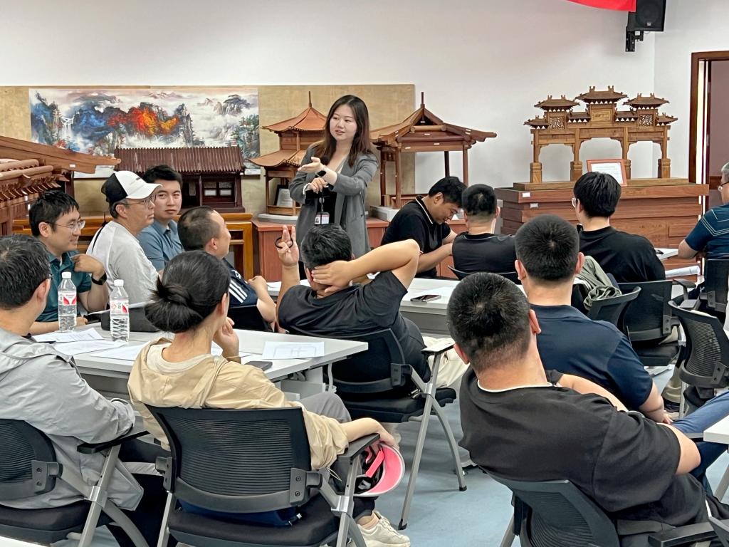 6月14日,学院传统建筑专业教师带领高研班学员观摩学习传统建筑实训基地,学员分组在雕刻室、木作室、彩画室、瓦石室、斗栱室、古建筑彩画营造技艺实训室进行研学活动。在集中展示分享后,各小组将形成的数字化传统建筑模型资源统一录入,本次采集的传统建筑实训基地数字化资源将作为开放资源长期向高研班成员共享。
