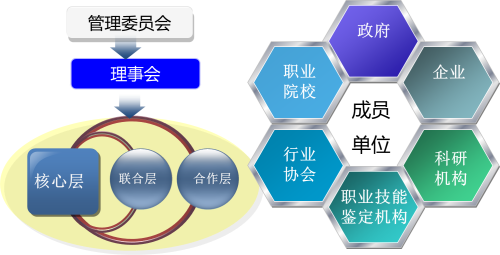 理事会是职教集团的执行机构。由职业院校、中外优秀企业、行业协会、科研机构、职业技能鉴定机构组成。理事会在管委会领导下负责集团的运行工作,发挥职教集团成员的综合优势,形成集团化办学优势。其有效运行的核心是集团成员单位能够找到合作的利益点,集团内各成员单位在集团平台上,以项目的形式,签署合作协议的方式开展合作,从而实现互利共赢。